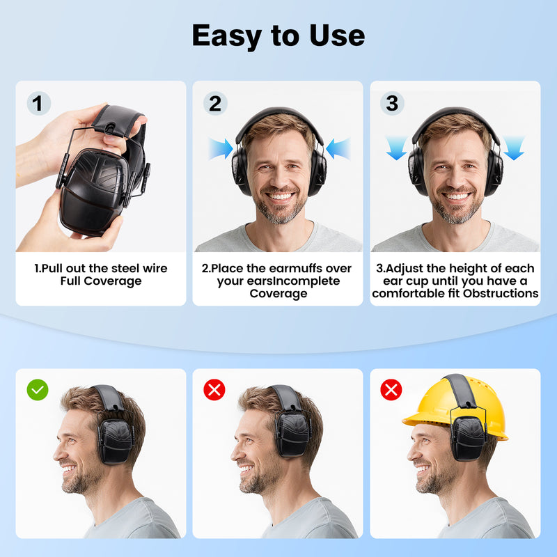 Experience premium protection without the pressure. Featuring ultra-soft memory foam cushions, these ear muffs contour to the head for a customized seal. The skin-friendly materials ensure a fatigue-free experience, allowing for hours of wear without the discomfort or "clamping" feeling typical of standard muffs.