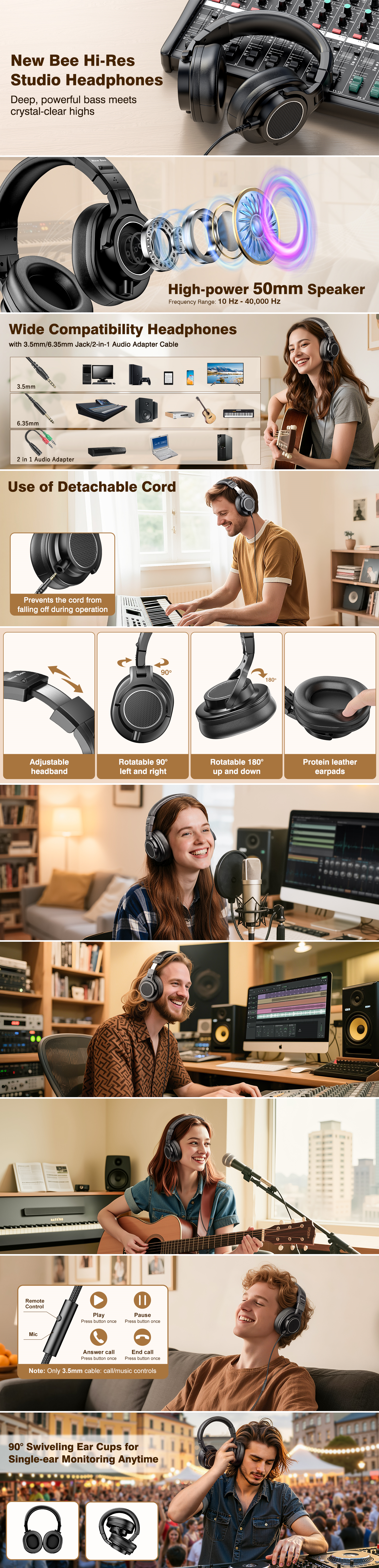Weighing only 210g, these headphones are built for the marathon creator. The plush memory foam and skin-friendly protein leather cushions provide a soft, breathable seal that minimizes ear fatigue. The lightweight, portable design ensures you remain comfortable through the longest recording sessions or late-night edits.