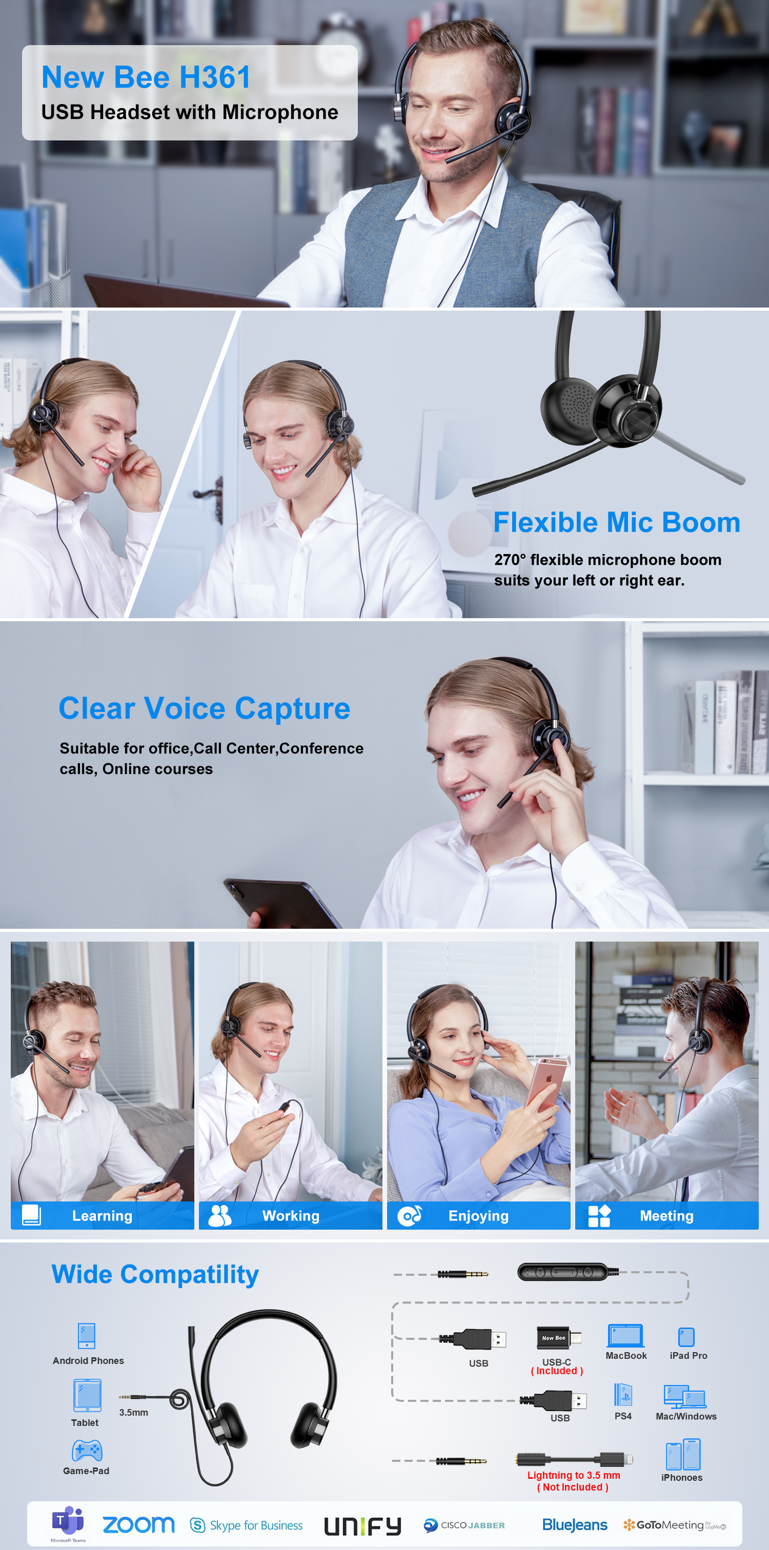 Stay connected across all your hardware. With USB, USB-C, and 3.5mm adapter options, this headset offers plug-and-play simplicity for laptops, smartphones, and tablets. From Windows and Mac to iOS and Android, it is the ultimate versatile tool for Skype, Zoom, and mobile communication.